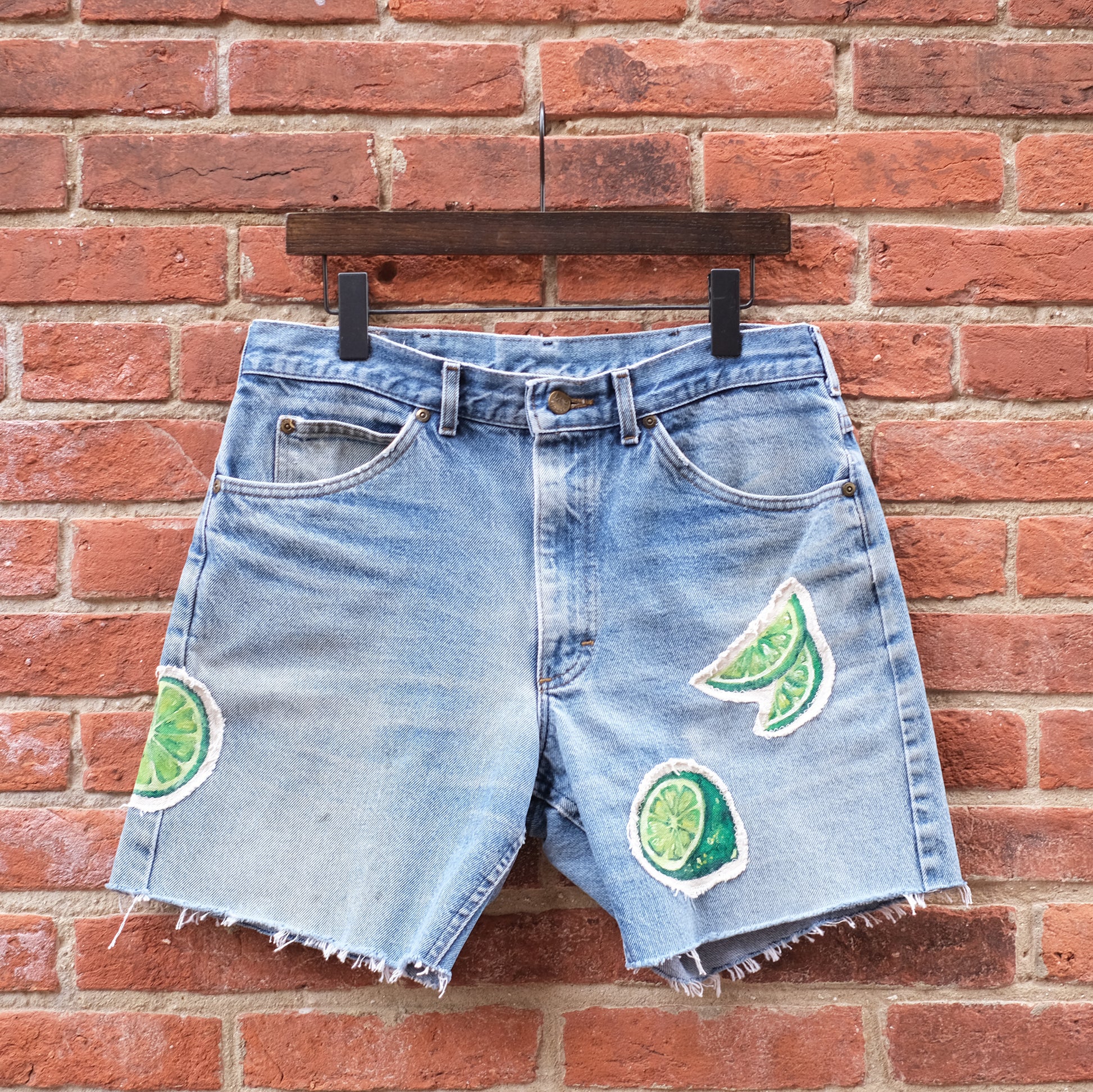 fruit patch denim cutoffs - lime 34