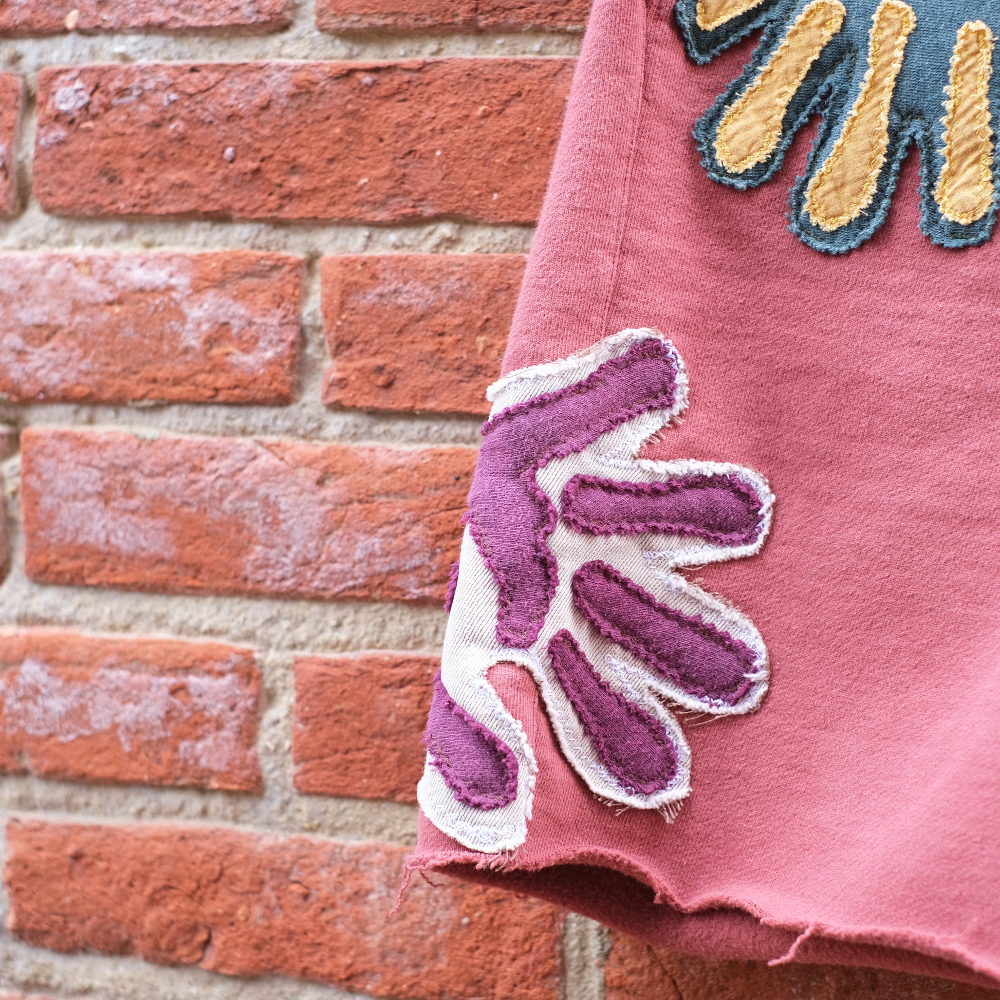 This piece is a thrifted shirt that has been altered and therefore one of a kind. It may have imperfections but we call that character.